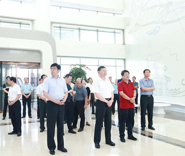 2018年6月28日,日照經(jīng)濟(jì)技術(shù)開(kāi)發(fā)區(qū)工委書(shū)記杜江濤一行到國(guó)家中印科技國(guó)際創(chuàng)新園參觀考察,市政府黨組成員、開(kāi)發(fā)區(qū)黨工委書(shū)記、管委會(huì)主任陳一兵陪同。