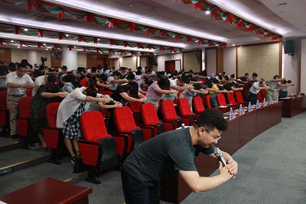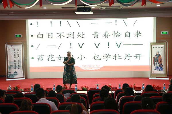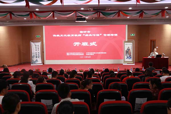 (課前禮儀) 7月10日-13日,由臨沂市教育科學(xué)研究中心主辦,中華優(yōu)秀傳統(tǒng)文化教育促進(jìn)會、青島出版社、臨沂市拓普網(wǎng)絡(luò)股份有限公司協(xié)辦的臨沂市傳統(tǒng)文化教育教師“經(jīng)典吟誦”專項培訓(xùn)會在國家中印國際科技創(chuàng)新園成功舉辦,來自臨沂市內(nèi)各縣區(qū)的400余名傳統(tǒng)文化教育教師參與了此次培訓(xùn)。